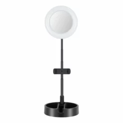 Du kan raskt skape alle typer innhold fra hjemmets komfort med Picture Me telefonholder med ringlys. Det kommer med et ringlys og speil, og har et sammenleggbart design som gjør det enkelt å ta den med. Du kan velge mellom tre fargetemperaturer og ti styrkenivåer, og alt lades via USB.