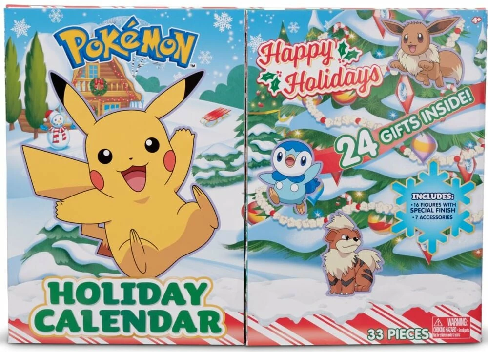 Denne 24-dagers kalenderen har 16 x 5 cm figurer og åtte tilbehør, og inneholder et Pokémon-leketøy med juletema for hver dag. Alle figurer har en glitrende finish som er eksklusiv for denne kalenderen.