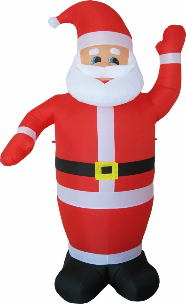 Stor oppblåsbar rød og hvit nisse med 8 stk. hvite LED-lys. Drives av en 12V luftpumpe. IP44 for utendørsbruk. Kan også brukes innendørs. 2 meter ledekabel.