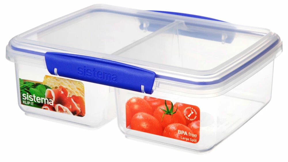 Sistema Klip It 2 liter Split matbokss har to rum i én. Perfekt for lunsj og snacks. Garantert fri for BPA og ftalater.