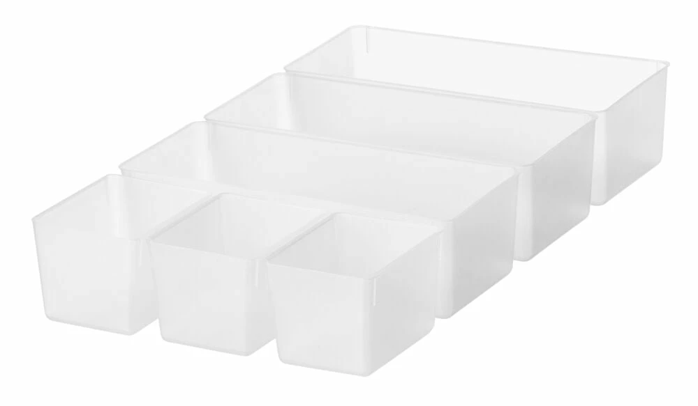 3 små og 3 mellomstore innsatser perfekte for å dele opp og organisere småting. Innsatsene passer perfekt til oppbevaringsboksene SmartStore Classic 14, 15 og Colour 14, 15.