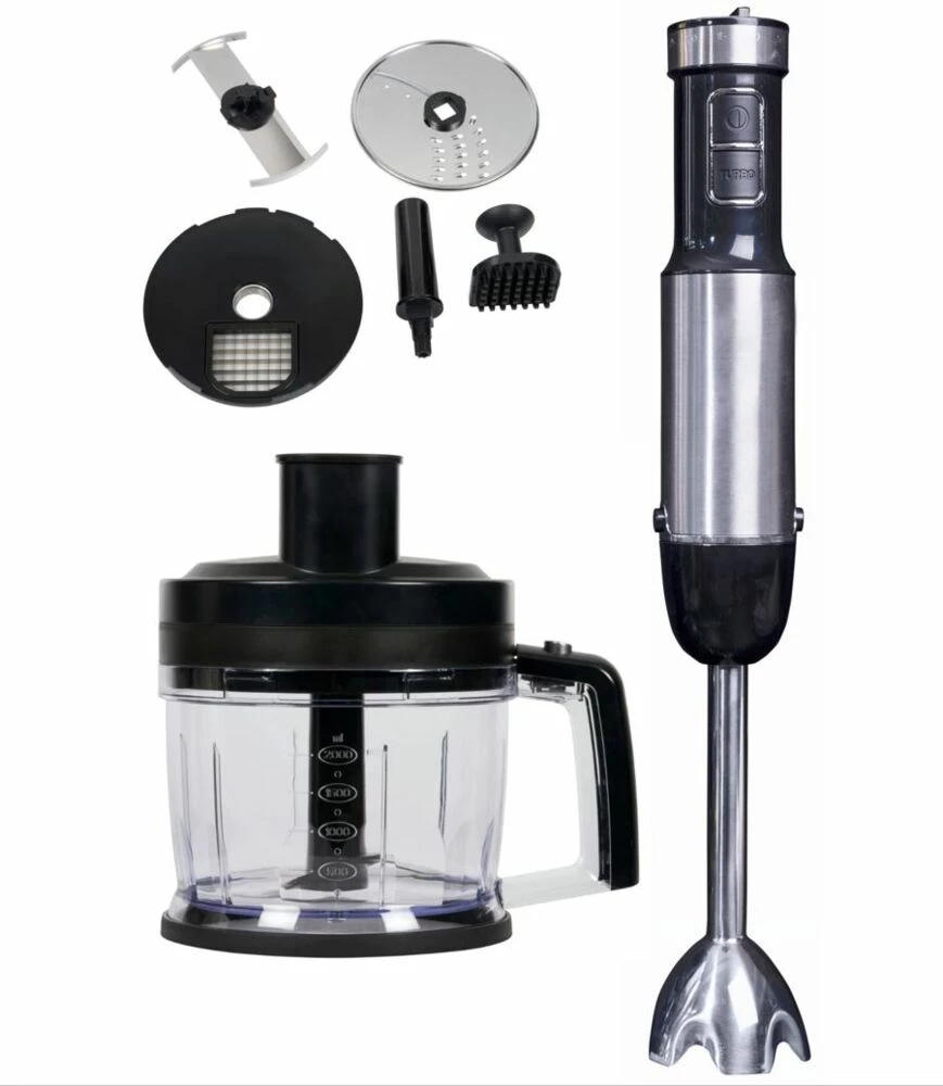 Den medfølgende minihakker er perfekt til harde matvarer, som kjøtt, ost, løk, urter, gulerøtter, nøtter, osv. Det finnes flere tilbehør som kan kjøpes og som passer til stavmikseren: Visp til pisking av krem, eggehviter og lette sauser. Moser som kan brukes til barnemat og til f eks kokt potet, kålrot, gulrot eller egg.