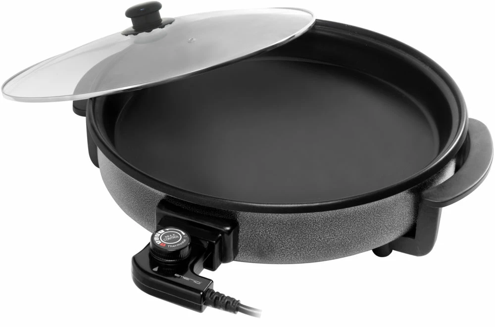 Produktnummer: 7025180653245 Kategorier: Elektrisk stekepanne, Kjøkkenutstyr og borddekking, Panner Stikkord: 1500 W, Elektrisk stekepanne med 40 cm diameter, Justèrbar termostat, Non-stick belegg, og med glasslokk
