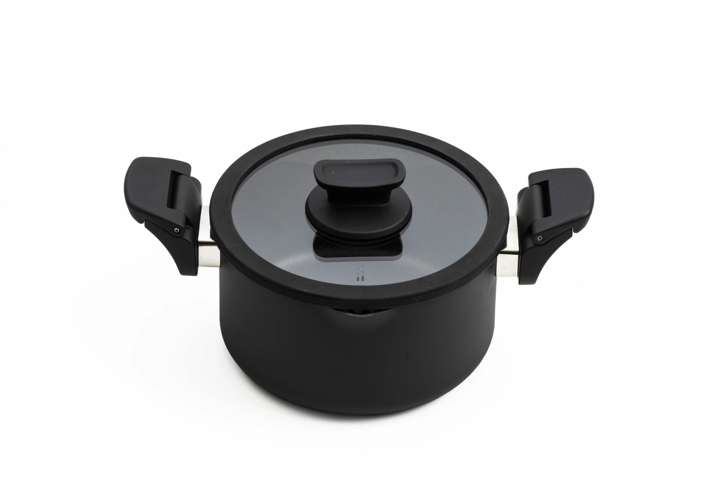 Spiis gryte med lokk. I aluminium med soft-grip håndtak, glasslokk med silikonkant. Maten brenner seg ikke fast og du kan tilberede sunn mat uten mye fett. Kan brukes på alle type koketopper.