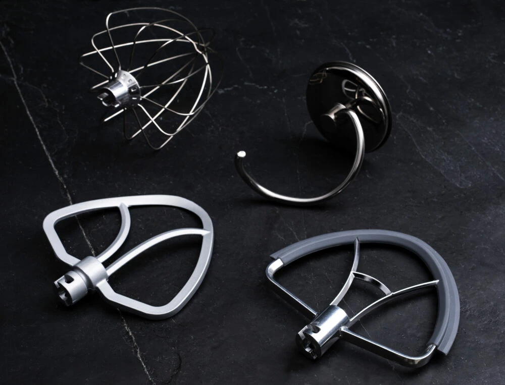 Det medfølger også en praktisk omrører med silikon, som er ideell til å blande f. eks kremer og kakefyll. Kjøkkenmaskinen blander effektivt ingrediensene og du vil oppleve f. eks en bedre deig ved elting, en luftigere konsistens ved pisking ved bruk av kjøkkenmaskin.