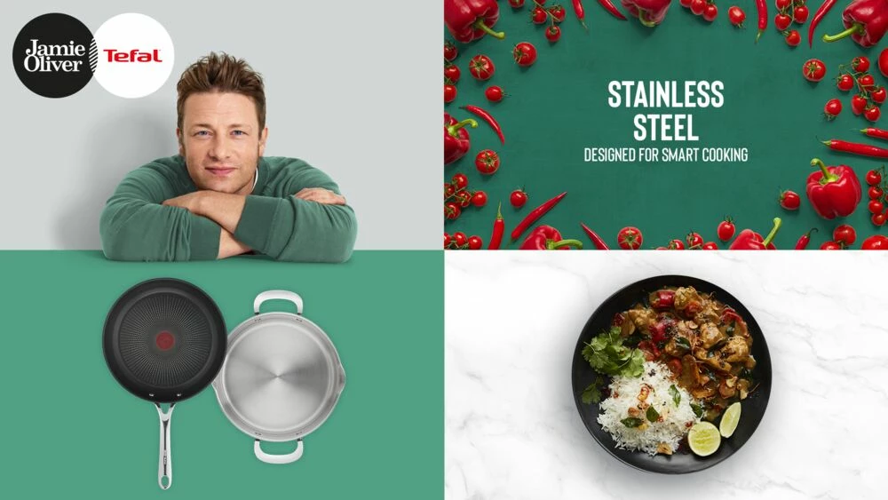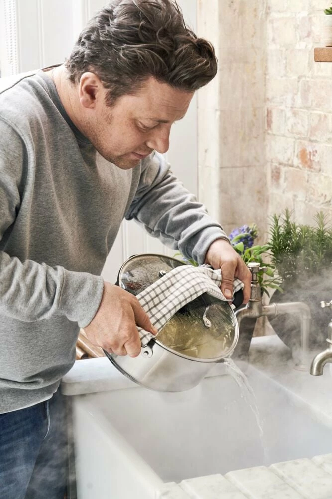 Lag raske og gode måltider i hverdagen med disse robuste og lette kokekarene i rustfritt stål. Silikonhåndtaket gir et behagelig og trygt grep, samtidig som det holder seg kjølig. Designet av Jamie Oliver: «Dette er kjelene jeg bruker til å lage mat i hverdagen – de er slitesterke, av høy kvalitet og gir supre resultater hver eneste gang. Det er derfor jeg har samarbeidet med Tefal i nærmere to tiår. Vi vil begge at flere skal lage smakfulle næringsrike måltider fra bunnen av.»