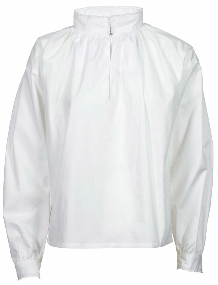 Produktnummer: 7072549132293 Kategorier: Bluser og skjorter, Fest og høytid, Festdrakter og bunadsko, Tilbehør festdrakter Stikkord: 100 % bomull, Brodert kanting på krage og skjortemansjetter, Hempe i halsåpning, Str. 36-48