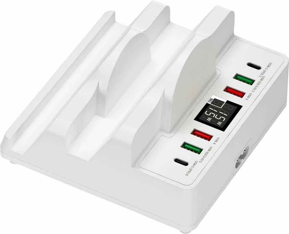 Ladestasjon med LED-display, USB-porter og trådløse soner