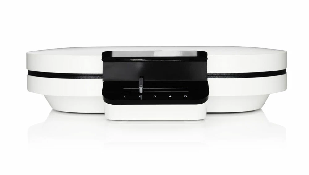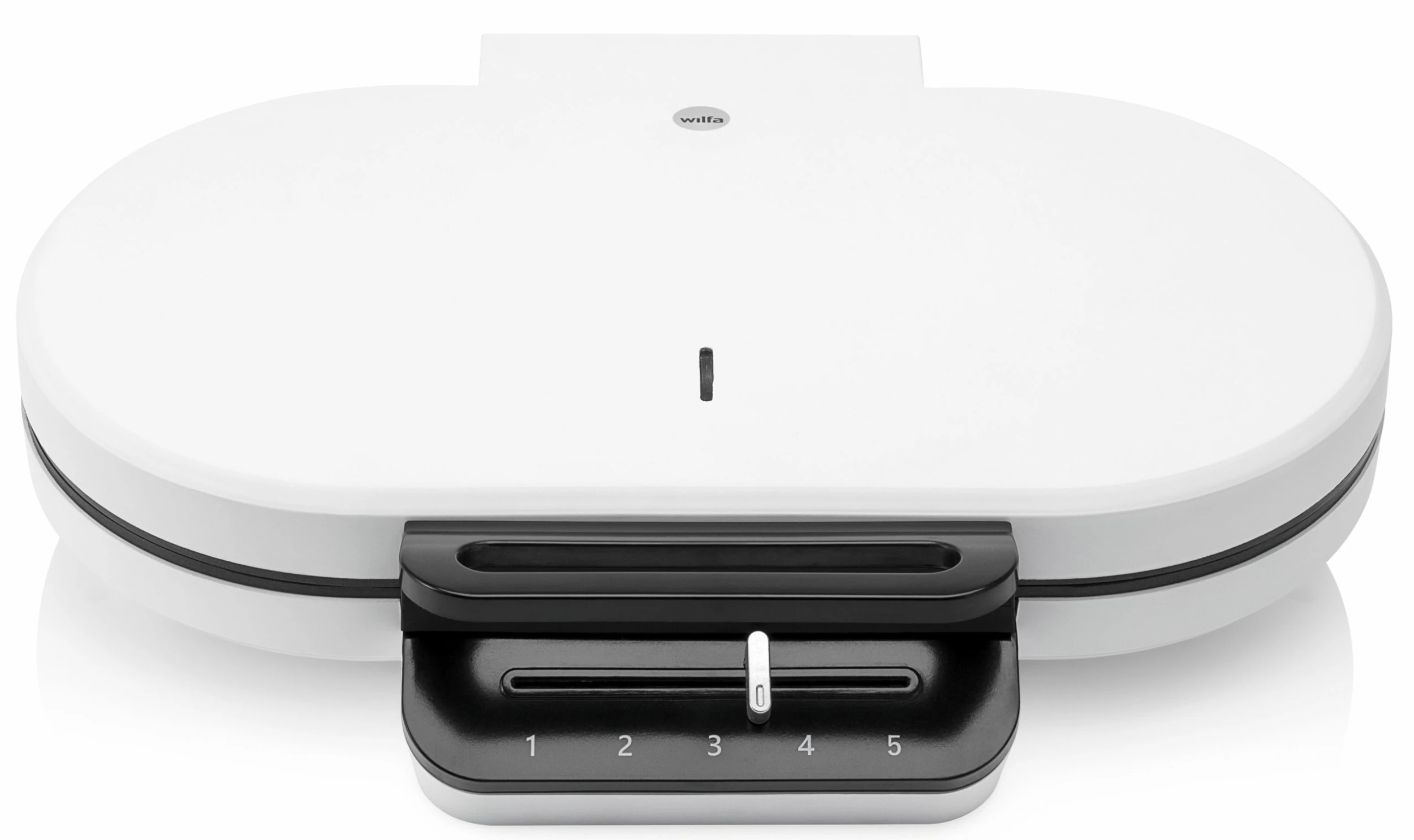 Det er et vaffeljern som steker jevnt og med den justerbare termostaten (1-5) kan du velge om du vil ha en lys, gylden eller mørk og sprø vaffel. Signallampen signaliserer når vaffelen er ferdig.