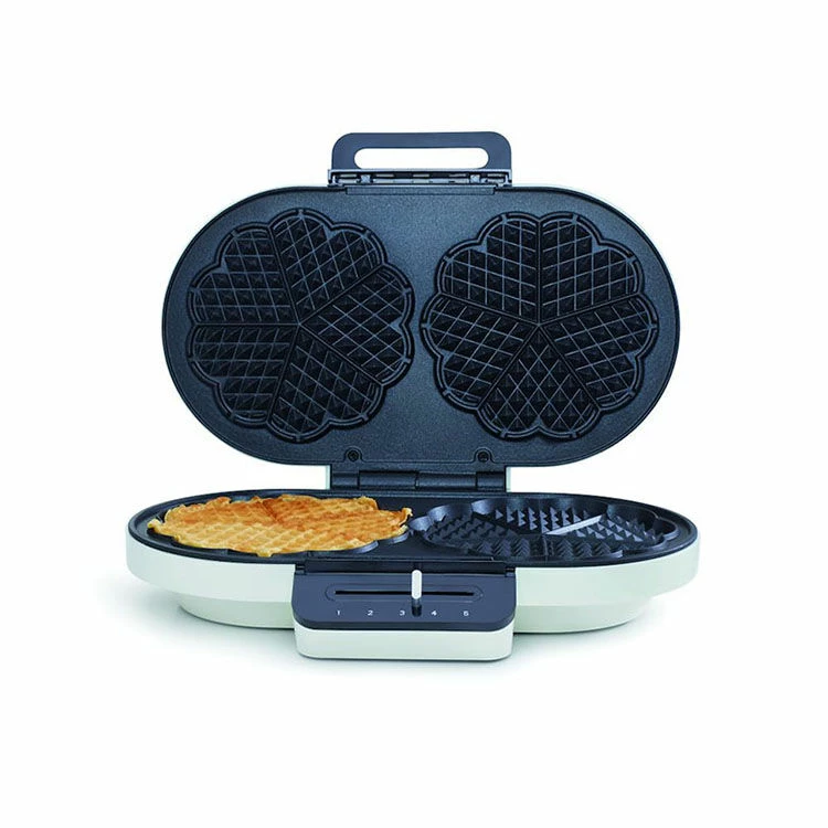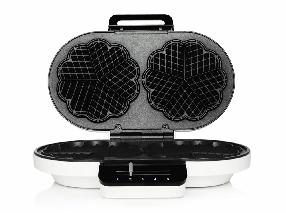 Dobbelt vaffeljern som steker jevnt og gir 5 vaffelhjerter.