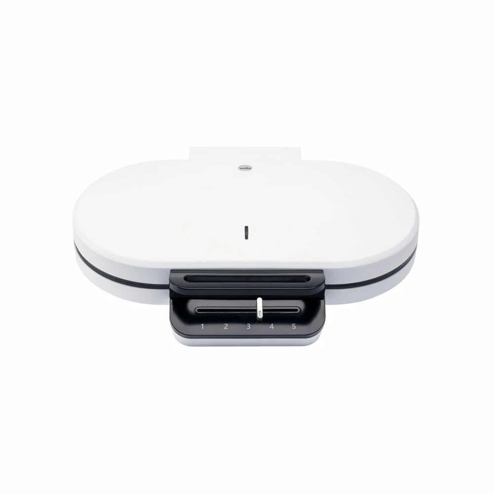 Et ujålete vaffeljern i hvitt og med enkelt design.