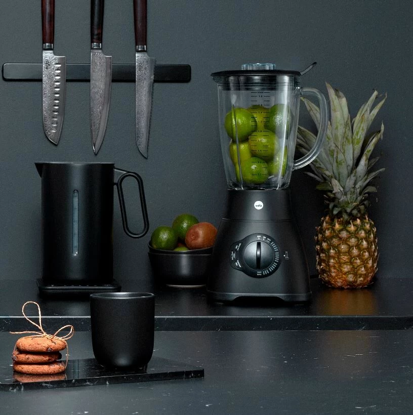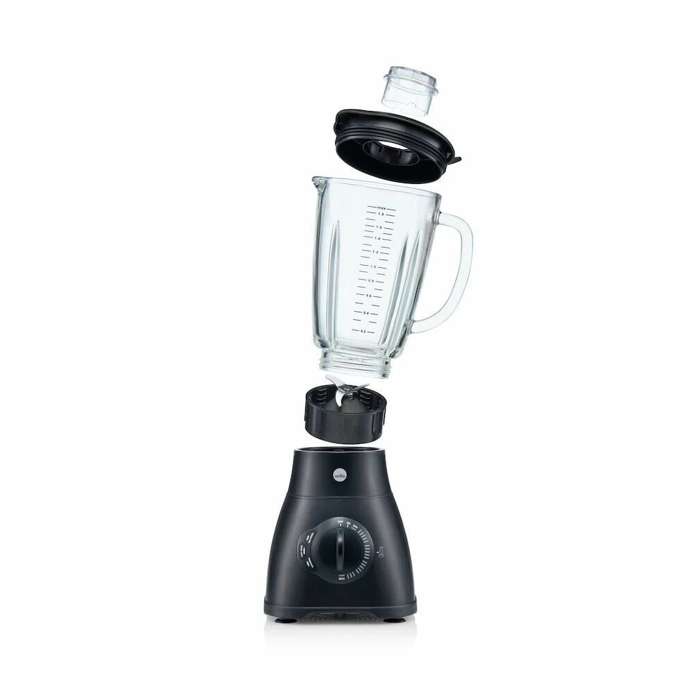 Glassmugge i kraftig og solid glass med fire avtagbare kniver – spesialutformede for å effektivt også knuse is.